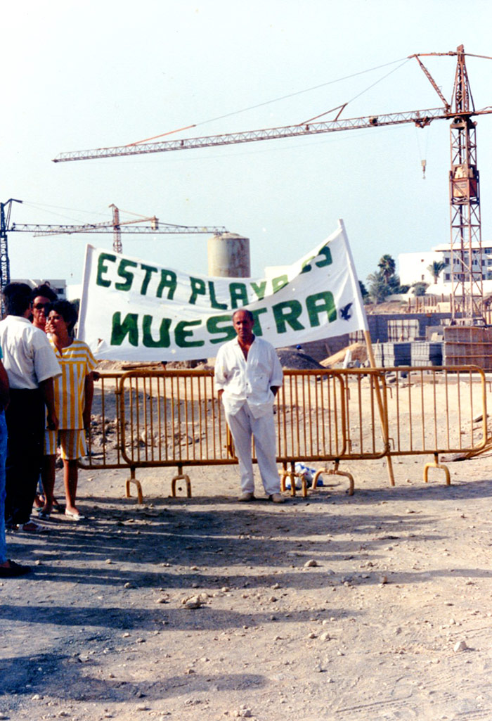 Fruto de esa inquietud, cuando a partir de mediados de los setenta, y sobre todo desde mediados de los ochenta, se intensifica la construcción alojativa, Manrique participa en actos de protesta por la construcción de complejos turísticos y alerta en infinidad de ocasiones de los riesgos de un crecimiento indiscriminado de la oferta alojativa en Lanzarote.