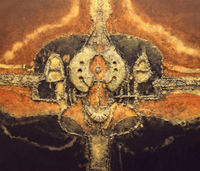 Tras un comienzo con vocación figurativa, en la primera mitad de la década de los cincuenta del pasado siglo XX se adentra en el arte abstracto e investiga las cualidades de la materia hasta convertirla en la protagonista esencial de sus composiciones. No obstante el carácter matérico y abstracto de su producción pictórica, el imaginario plástico de esta procede de las impresiones del paisaje volcánico de Lanzarote.