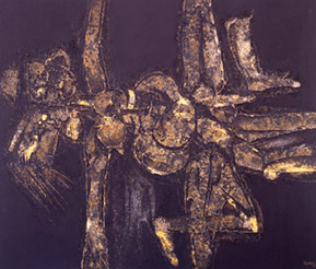 Tras finalizar sus estudios en la Academia de Bellas Artes de San Fernando en Madrid (donde vivió entre 1945 y 1964), expone con frecuencia su pintura tanto dentro como fuera de España. En la primera mitad de los cincuenta, se adentra en el arte no figurativo e investiga las cualidades de la materia hasta convertirla en la protagonista esencial de sus composiciones, vinculándose así al movimiento informalista español de esos años.
