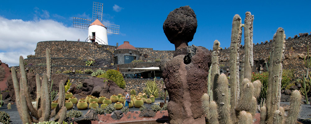 El Jardín de Cactus es la última intervención de César Manrique en el territorio de Lanzarote y un compendio de las pautas estéticas que siguió en sus obras de arte público integradas en el paisaje. La creativa mezcla de lenguajes y técnicas artísticas, que el propio autor lanzaroteño denominó como «arte total», logra dar vida en este caso a una arquitectura orgánica y a elementos decorativos y escultóricos fusionados con el entorno. Un planteamiento para unir Arte y Naturaleza.